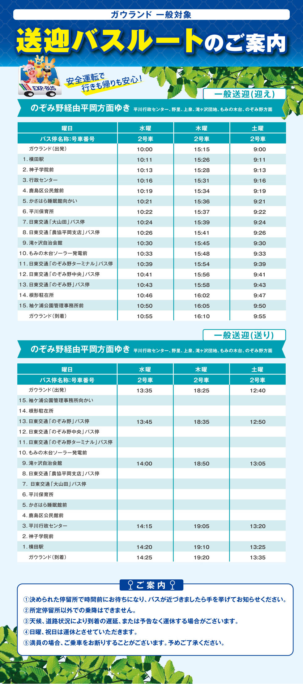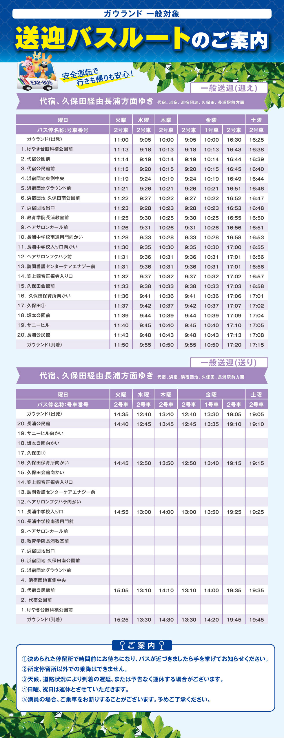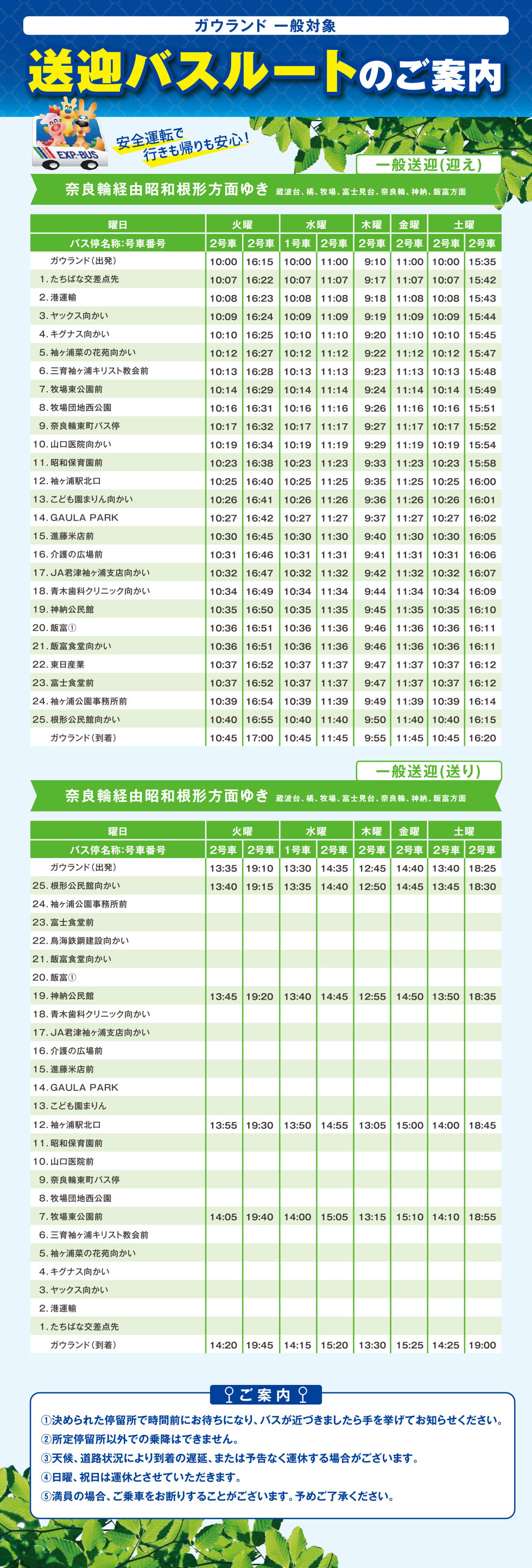 【一般向け情報】一般向け送迎バスルートのご案内