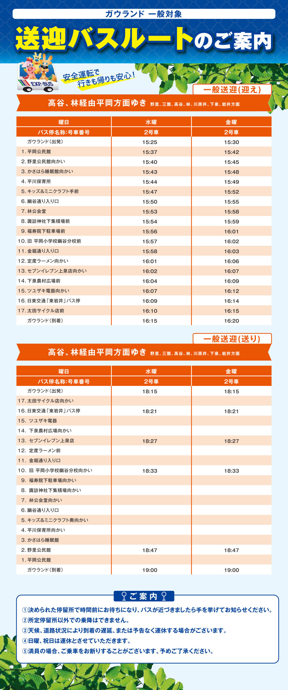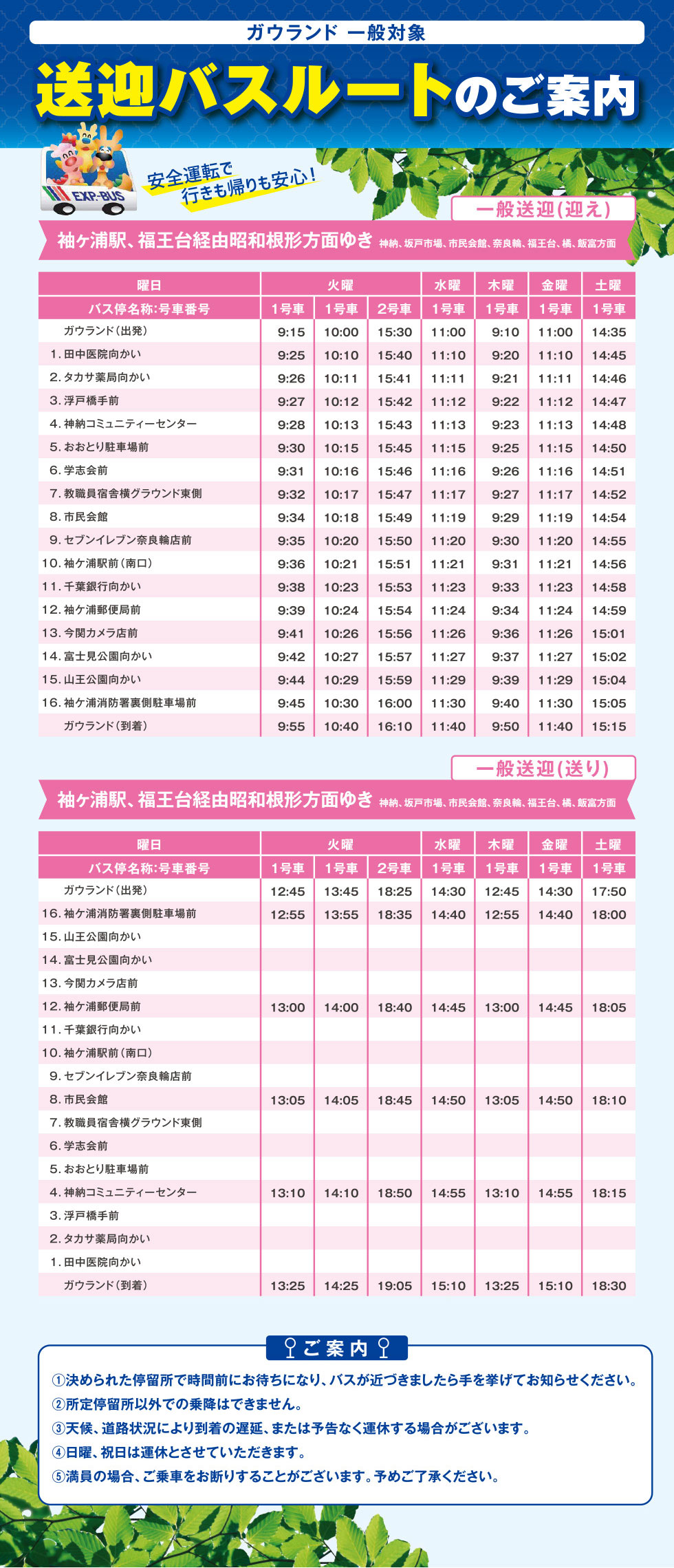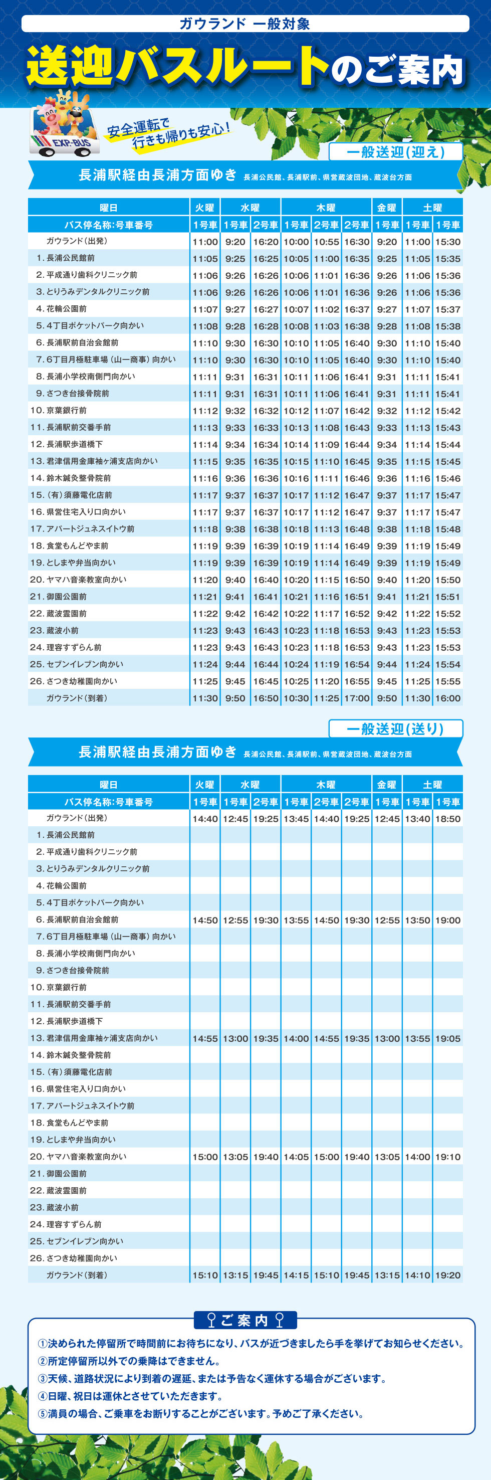 【一般向け情報】一般向け送迎バスルートのご案内