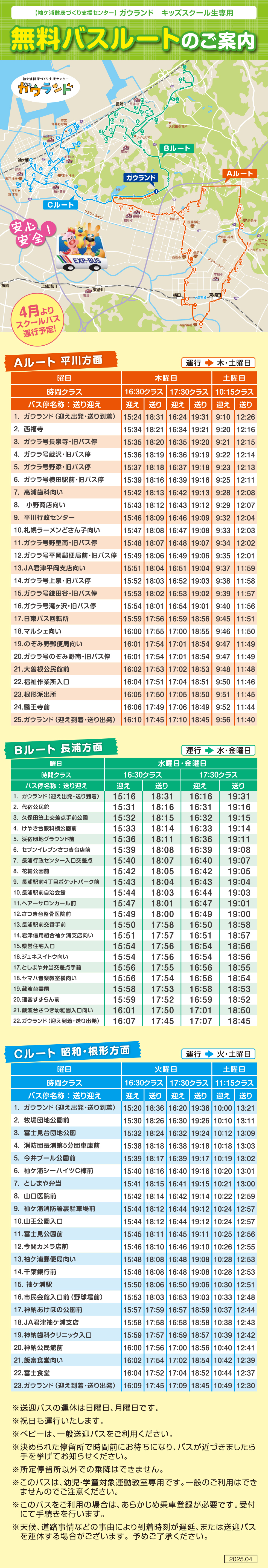 【お子様情報】キッズスクール教室専用バス利用のご案内